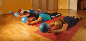 In kleinen Gruppen 6 - 8 Pers. kommen beim Pilates Mattentraining
